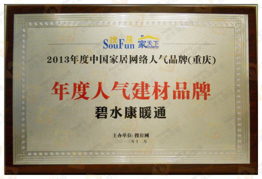 熱烈祝賀碧水康暖通榮獲“2013年度人氣建材品牌”